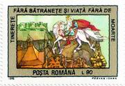 timbre. Pe timbrul cu valoarea nominală de 1,50 lei apar desene din