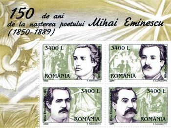 Eminescu”. Emisiunea a fost editată în bloc de patru timbre,